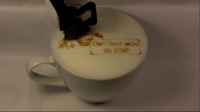 Empresa OnLatte ha desarrollado una impresora especial que utiliza azúcar caramelizada para imprimir fotos y diseños en el marrón. La impresora está todavía en la etapa de construcción y no está disponible en el mercado.