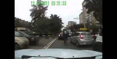 Un ciclista se desata en el espejo de un coche después de una disputa con el asistente.