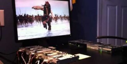 El tema de la famosa película con sonidos de 8 unidades de disquete.