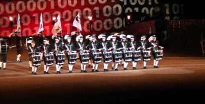 Los percusionistas del ejército británico en perfecta sincronía. Extraer el desfile militar anual 'Royal Edinburgh Military Tattoo' [...]