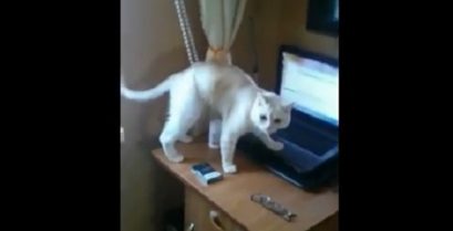 Un gato que se enreda con el cable de las persianas, tratando de descubrir por qué la gravedad no funciona...