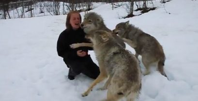 La Anita cuidado de lobos en el parque zoológico Polar Zoo, Noruega. Cuando regresó tras una ausencia de dos meses, los lobos de prepararon un gran recibimiento