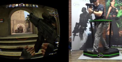 Usar la caminadora Virtuix Omni, el casco de realidad virtual Oculus Rift y un controlador con forma de pistola, un hombre toca la ofensiva Global del juego Counter-strike '. Sin duda una experiencia única para los fanáticos de los FPS.