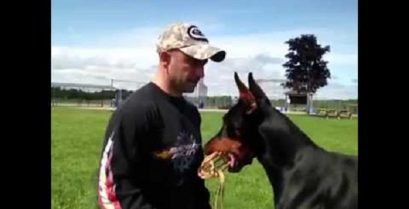 El dueño de un perro Doberman Pinscher en Ontario Canadá hace una demostración de inteligencia asombrosa y la formación de.