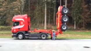 Un plegable teaser trailer para camiones, fabricado por la empresa Suiza MOBAS.