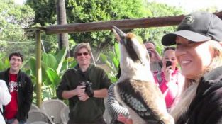 El zoológico de San Diego, los huéspedes entran en contacto con una de las aves más espectaculares del planeta, el australiano koykampoyra.