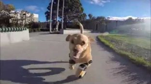 Perro con discapacidad, Margarita aprendió a ejecutar en piernas protésicas