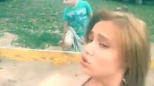 Este hombre ha encontrado una nueva técnica usando un palo grande. Sujetando con ambas manos, saldos haciendo pequeños saltos.
