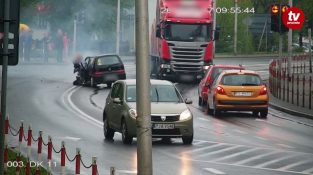 En una intersección en la ciudad de Jarocin en Polonia, un camión pasa una luz roja y realiza un plagiometopika Fiat Seicento. El coche giró y el conductor no parece que la zona horaria, viene casi [...]