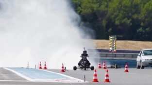 El inventor francés François Gissy construyó un triciclo que utiliza agua a presión, y puede llegar a 261 kmh con una aceleración de 0-100 en sólo 0,55 segundos.