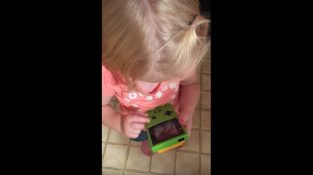 Una niña intenta jugar Game Boy