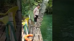 Un grupo de jóvenes hizo a su amigo en la creencia de que se zambulló en un estanque con pirañas, tirar algo de comida en lleno con agua de trucha.