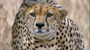 En Kenia, tres jóvenes Cheetah persiguiendo un avestruz. Extracto del documental la vida de la tierra de la BBC.