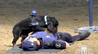 Una demostración 'heroica' del perro policía Poncho, que no dudó ni un momento en 'salvar la vida' de su colega, la aplicación de la RCP. Extracto de la muestra de los perros policía, policía en Madrid.