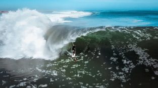 En la costa de los esqueletos en Namibia África, el surf Koa Smith en una ola durante 2 minutos, cubriendo una distancia de 1,5 km. El tiro impresionante filmada con un avión no tripulado.