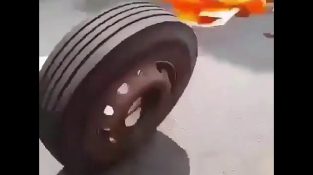 Una fuga de combustible del automóvil deja tras de sí un camino de fuego que enciende el combustible.