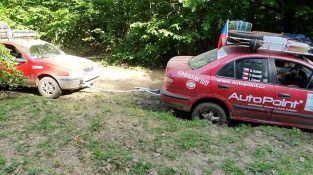 Uno de los coches era parte del Rally Gumbalkan, uno de la República Checa a la ruta barata vehículos todo terreno Rumania, atascado en el barro. Uno de los amigos del conductor trató de sacarlo [...]