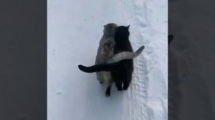 Dos gatos en la nieve