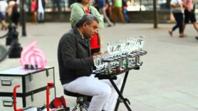 The Street Esiintyjä Budapestin pelata kaunista Popcorn laulu musiikkia silmälasit. Mielenkiintoisin katutaiteilijalla kadulla Budapestin että tapasin.