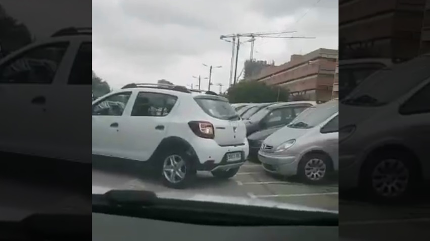 Nainen Espanjan yrittää pysäköidä autonsa, mutta se näyttää olevan erittäin vaikeaa. Miksi does;