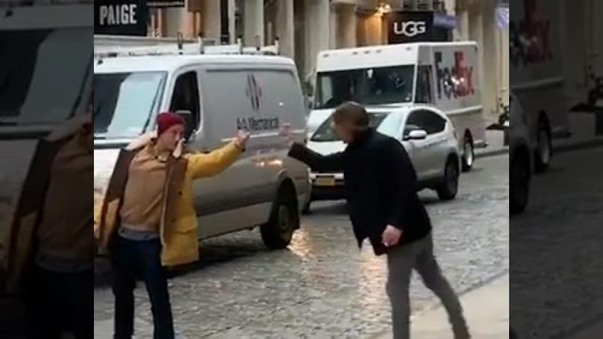 Kaksi miestä riitelevät keskellä tietä ja kohdata kuka tekee lopullisen eleen.