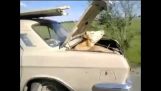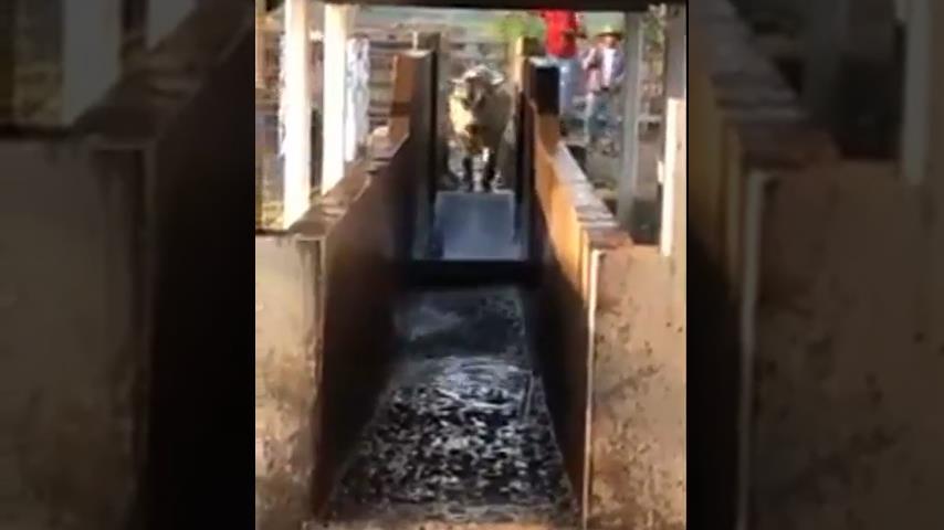 Vuonna lehmä maatilalla, lehmää tulisi panna säiliöön vettä, joka sisältää hyönteisiä hyönteisiä ja kirput. Yritetään hypätä yli säiliöön, lehmä putoaa suoraan tähän vaikuttava tilkka.