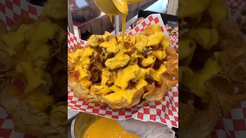 Delicious viipaleperunoita cheddarjuustoa ja chili näyttelytiloja OC Fair Kaliforniassa.