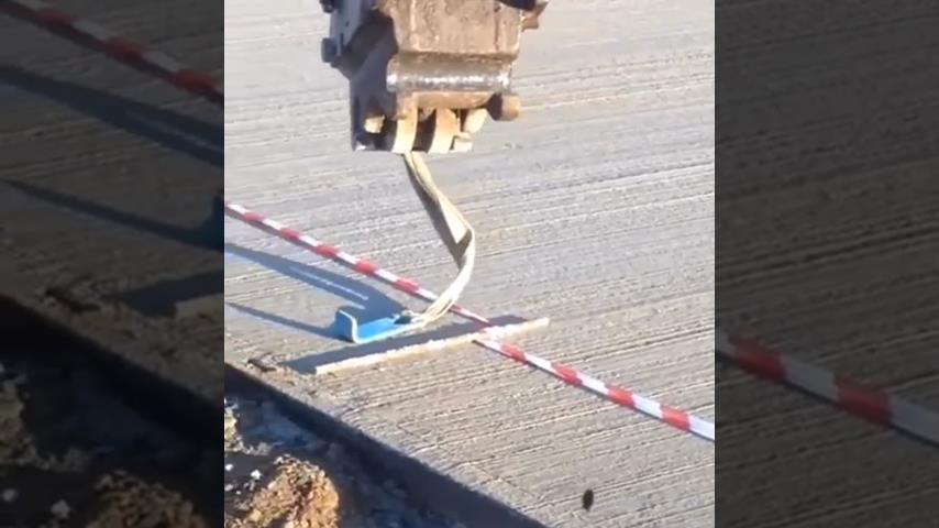 Kaivinkoneen kuljettaja liikuttaa koneen vartta erittäin tarkasti, kiinnittää koukku metallikiskon reikään.