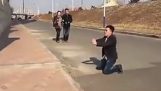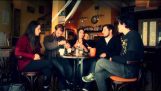 Mies laulaa kissansa kanssa lastenlaulun 'Happy with my two hands'. (Jos sun lysti on ja tiedät sen).
