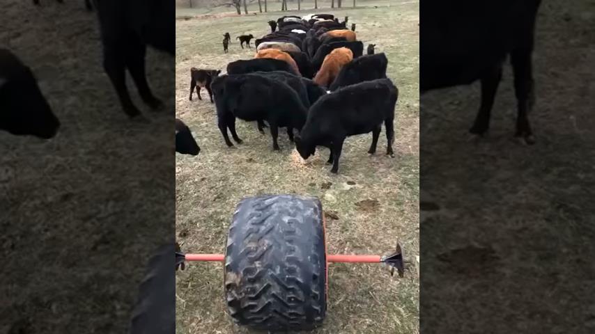 Viljelijä käyttää älykästä menetelmää lehmien ruokintaan, ilman että ne ovat tungosta samassa pisteessä. Tämä varmistaa, että kaikki syövät saman määrän ruokaa.