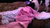 Vauva näyttää nauttivan erittäin pehmeästä huopastaan.