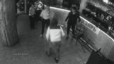 Koira heittää omistajan maahan, lähestyä pariskunnan koiraa. Isku hämmästytti, nainen putoaa maahan vielä kaksi kertaa yrittäen saada kiinni koirastaan.