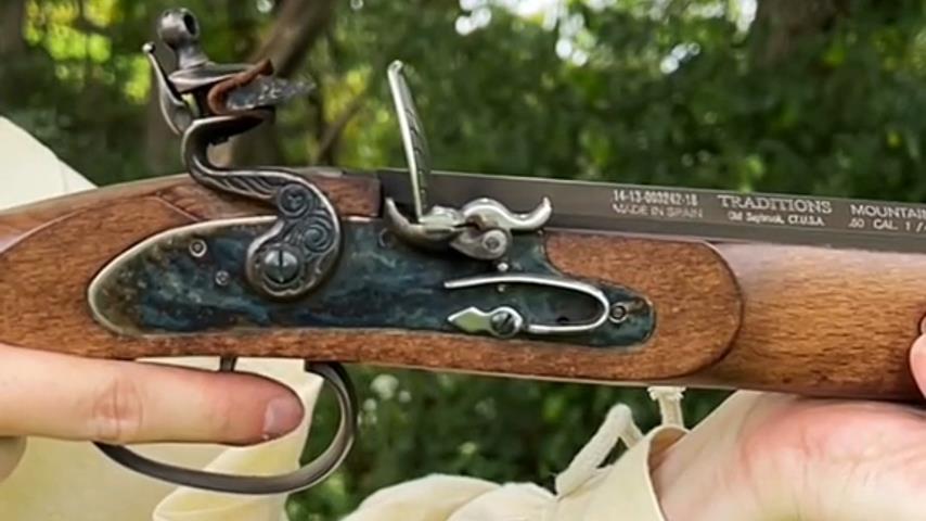 Esittely piikivikiväärin lataamisesta ja ampumisesta, asetyyppi, joka vallitsi 1600-luvulta 1800-luvun puoliväliin.