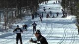 Vanhan Chevrolet Camaron kuljettaja putoaa istuimeltaan, kun hän ottaa jyrkän käännöksen.