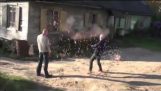 Kaksi roskaa kuorma -autoa Venäjän Yakutiassa, He menivät töihin aamulla vähän humalassa.