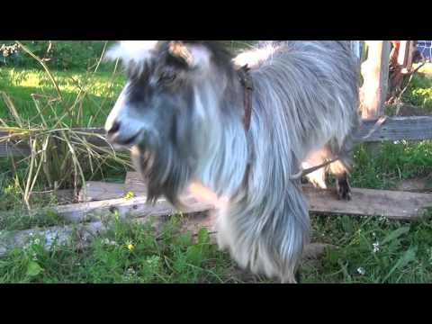 Uteliaat vuohet lähestyvät ruohonleikkuria, mutta kun viljelijä käynnistää koneen, vuohet ovat peloissaan ja ujoja...