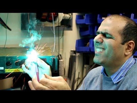 Alumiinisulatossa Venäjällä, työntekijät osoittavat noin 2 MW:n tuottaman voimakkaan magneettikentän..
