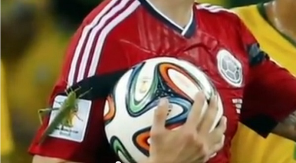 Epätavallinen kohtaus eilisen World Cup ottelu Brasilian ja Kolumbian. James Rodriguez teki kolumbialainen jalkapalloilija, ja valtava Heinäsirkka kädessään. Rodriguez ymmärtänyt hyönteinen ja edelleen hurraavat.