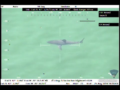 Video, se otettiin poliisin helikopteri on selvästi näkyvissä valkohaita lähtee syvyydessä meressä kyydin pinnalla hetki, saaliin etsinnän.