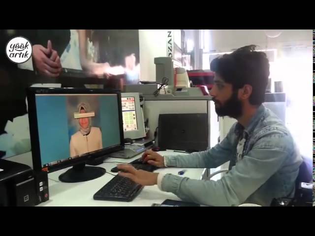 Konttoristi Turkissa Muokkaa kuva Photoshopissa uskomattoman nopeasti. Näyttää kuitenkin siltä, että nämä esitykset on tehnyt tuhansia kertoja, kaikki näppäimistön ovat mekaanisesti.