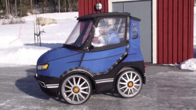 Keksijä Kjellman Mikael Ruotsista osoittaa, PodRide, pieni Sähköauto polkimet, jotka voivat liikkua helposti pyöräteitä pitkin maanteitä. Painaa 70 kiloa, pituus 75 cm ja korkeus 1,45 metrin, Tämä ympäristöystävällinen ajoneuvo pystyy saavuttamaan 25 km / h sähkömoottori.