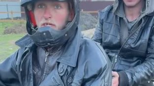 Moottoripyöräilijän ihme, jonka kuorma-auton pyörä melkein kaatui
