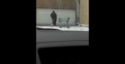 Työntekijä Wal-Mart-liikkeen ulkopuolella Yhdysvalloissa yrittää puhdistaa lunta…