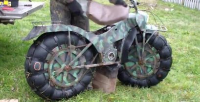 Moottoripyörä Venäjältä, jotka liikkuvat kaikkialla ja disassembles nopeasti helppo kuljettaa. Kutsutaan Tarus (ТАРУСЬ) ja se on liikennettä ja molemmat pyörät (2×2) niin hän voi liikkua maastossa.