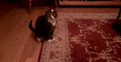 Tämä laserosoitin omistaja laittaa kissa päänsä päällä ja todettu joitakin erittäin hauska reaktio.