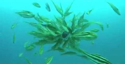 Leatherjacket hyökkäsi ja tappoi mustekala , melko graafinen , Tämä on hämmästyttävä näyttö eläinten käyttäytyminen.