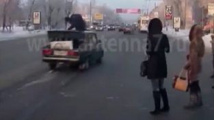 Auto osuu jalankulkijan, jotka haluavat ailoyros välttää vahinkoa hyppäämällä päälle huppu. Varmasti tämä ei ole ensimmäinen kerta, kun tällaista tapahtuu.