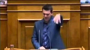 Alexis Tsipras puheessaan parlamentissa vuonna 2012, osoitetun Adwni Georgiades.