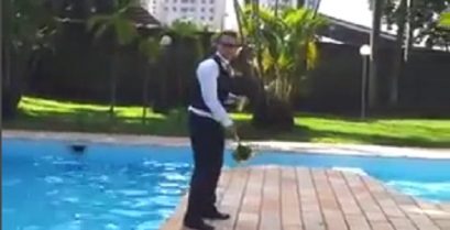 Avioliitto, sulhanen lentää perinteinen kimpun naimattomia ihmistä, jotka kokoontuivat uima-altaan reunalla. Kuka on seuraava;