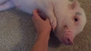 Max huutaa etikkakurkku, Pygmy sikuri possu ja, hyväillä vatsan. Heti, Suolakurkku-rakastava hivelevän, hän juoksee kohti omistajaansa tekemässä ison 'sukelluksen' matolla.